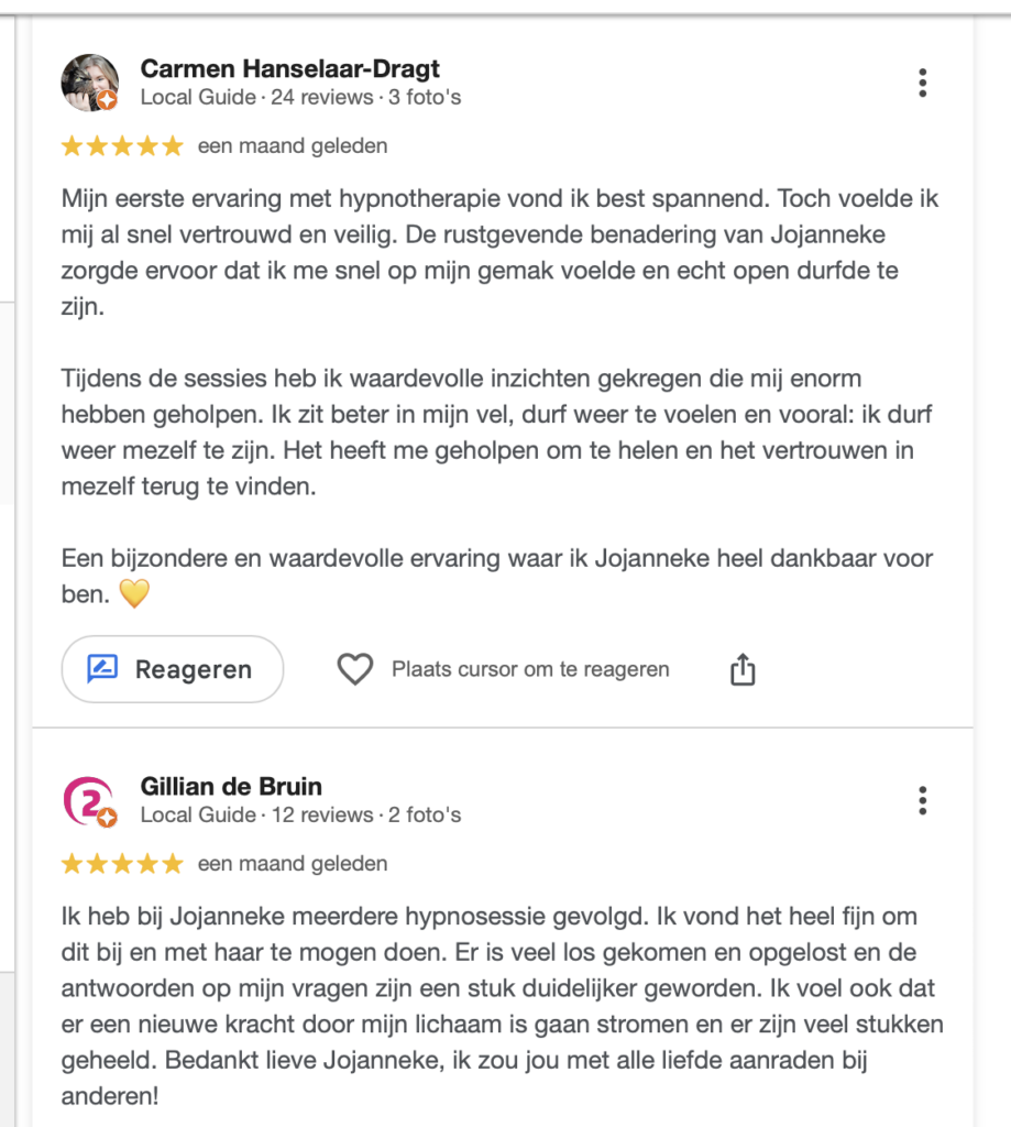 Tijdens deze sessies beïnvloed ik je niet, val je niet weg, raak je de controle niet kwijt en je doet niets wat je niet wilt.